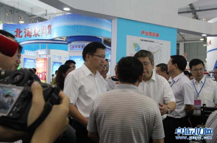 上自治區(qū)政府副主席黃日波和玉林市委書記王凱參觀